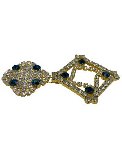 Der Schmuckhaken mit silbernen und achteckigen Strass und rhombus Form ist das perfekte Accessoire, um Ihren Kleidungsstücken und Accessoires Eleganz zu verleihen. Aus robustem Metall, passt dieser Haken 7x4 cm und hat eine basis in gold und silber. Die hellen Strasssteine und die charakteristische rombo-Form ergänzen Glanz und machen es ideal für Kleidung, Taschen und andere kreative Projekte. Preis pro Stück.