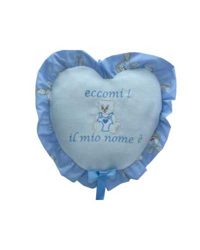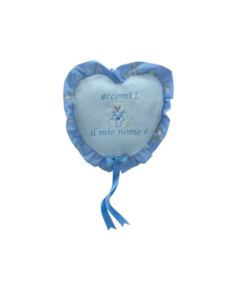Coccard Fiocco Bircita Celeste Cuore gepolstert Tela Aida Bianco Orsetto 30x40