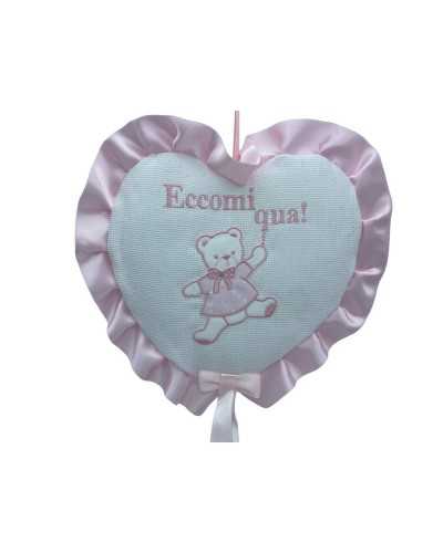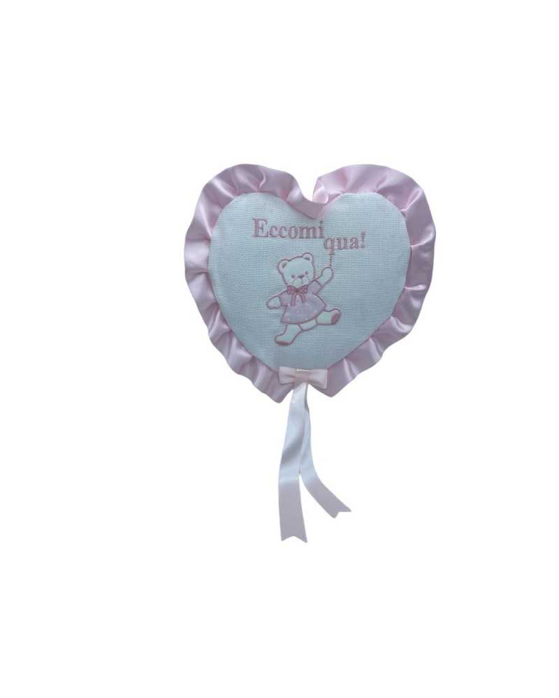 Coccard Fiocco Pink Birgit Cuore gepolstert Tela Aida Bianco Orsetto 30x40