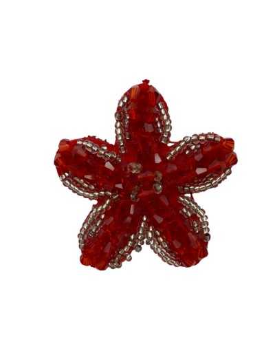 Applicazione Cucibile Fiore Ø 4,5 cm Ricamo con Perline Rosse e Argento