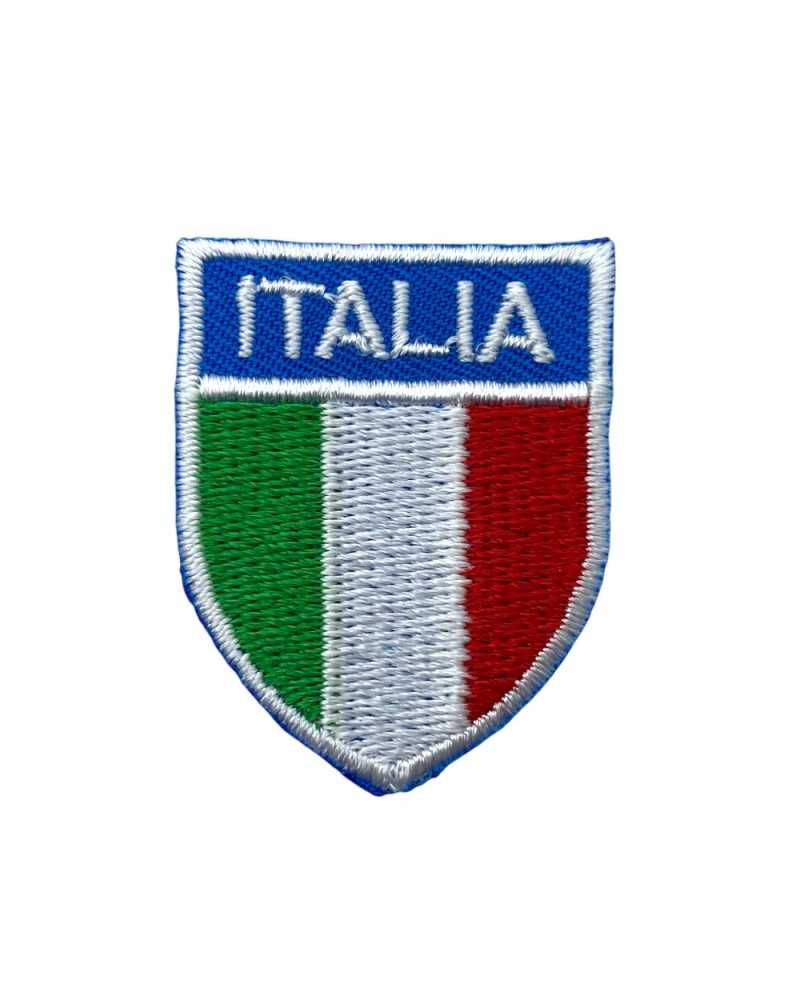 Thermoklebeapplikation in Form des Italien-Abzeichens, hergestellt mit definierter und widerstandsfähiger Stickerei. Ideal zur Personalisierung von Kleidung, Accessoires, Taschen, Rucksäcken, Hüten und Sportartikeln. Die kompakte Größe macht es auch ideal für diskrete Dekorationen oder ästhetische Reparaturen.