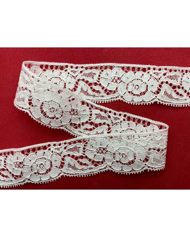 Passmanien Merletto Pizzo Valencienne Bianco Stickerei Blume Hoch Cm 2,8