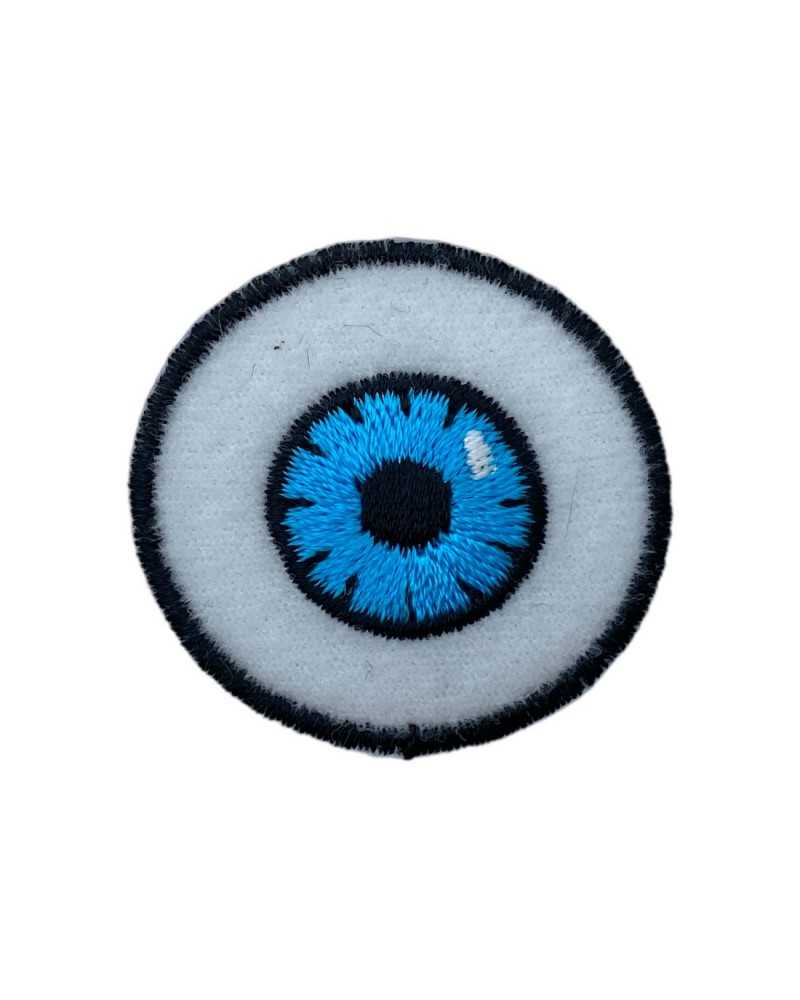 Dekorativer Patch mit starker visueller Wirkung: dasblaues Auge Besticktes, Symbol für Schutz und Stil, ist es perfekt, um Jacken, Taschen, Jeans- und Streetwear-Accessoires einen originellen Noten zu geben.