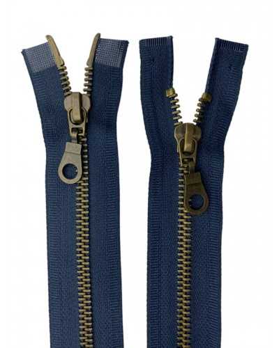 Cremallera divisible de 75 cm, con cadena de metal acabado oro viejo de 5 mm y cincha de polialgodón. Equipada con 1 cursor metálico, está diseñada para ofrecer resistencia, fluidez y estilo. Ideal para prendas técnicas, chaquetas, sudaderas, abrigos, trajes y accesorios de moda. El color oscuro metalizado le da un toque moderno y profesional.