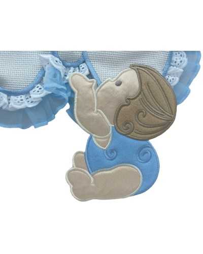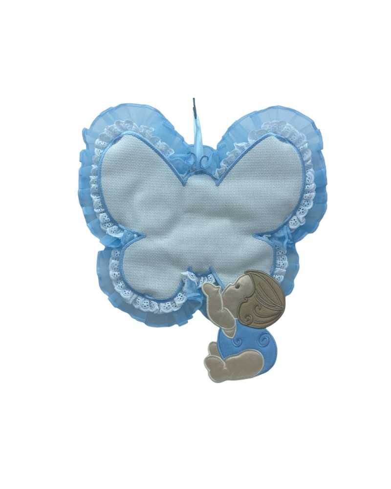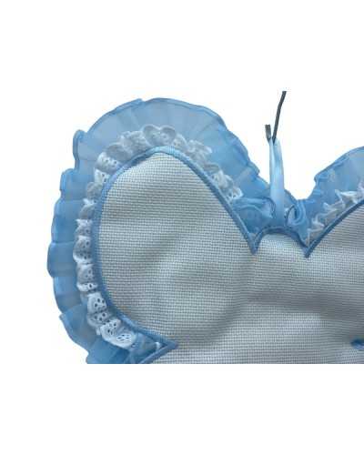 Bola de la mariposa de nacimiento Tela Aida White Rouges Lace Sangallo Organza Celeste Embroidery Baby High 35x32 Cm