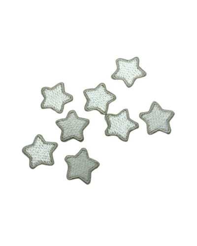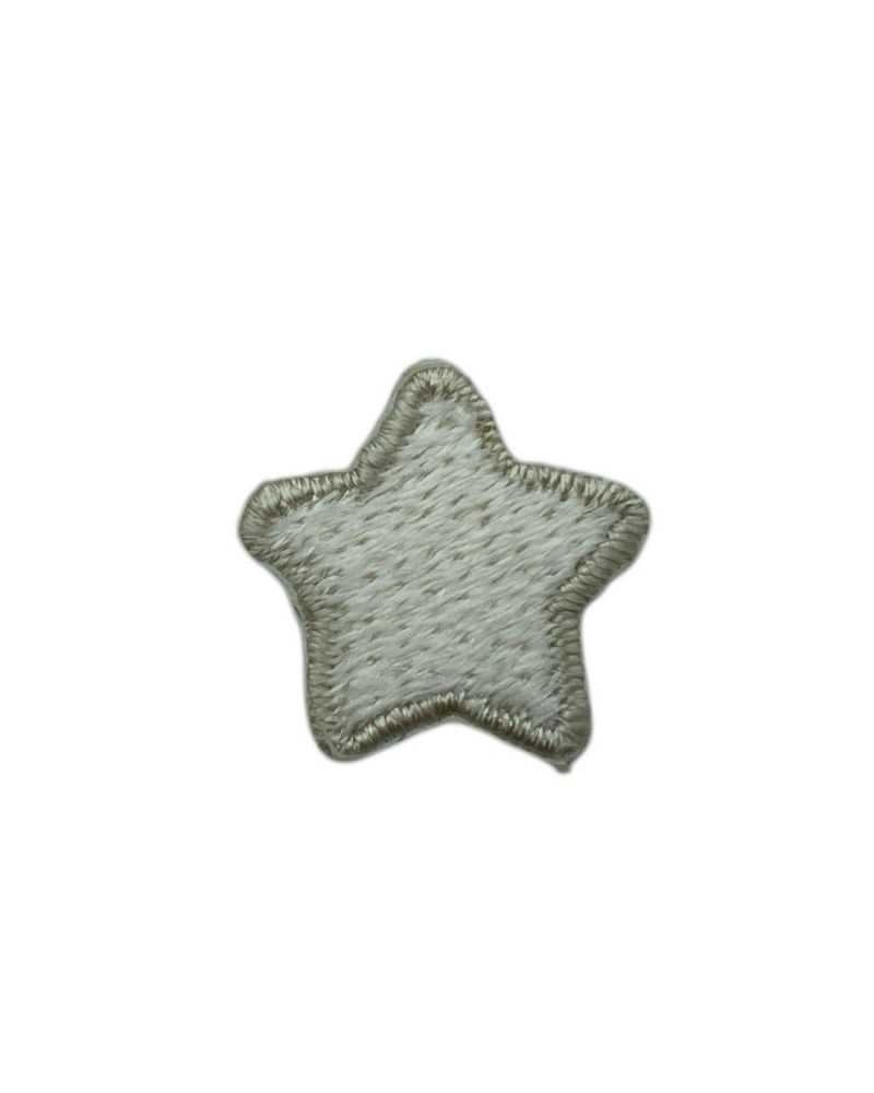 Aplicación calor-adhesivo pequeña estrella beige 1,5 cm, perfecto para ropa de bebé y decoración textil. Fácil de aplicar con hierro. Precio por 1 unidad.