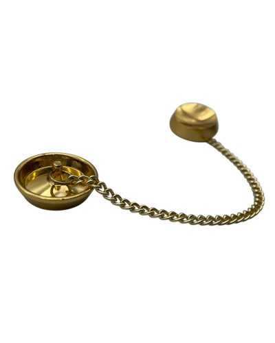 Caractéristiques : ✔ Diamètre du bouton : 23 mm ✔ Ligne : 34 ✔ Forme : ronde avec surface creuse et bord biseauté ✔ Matière : plastique avec effet métal doré ✔ Finition : polie et réfléchissante ✔ Chaîne : maille dorée, longueur 12 cm ✔ Fixation : tige arrière ✔ Prix : Se réfère à l'ensemble complet (2 boutons + chaîne)