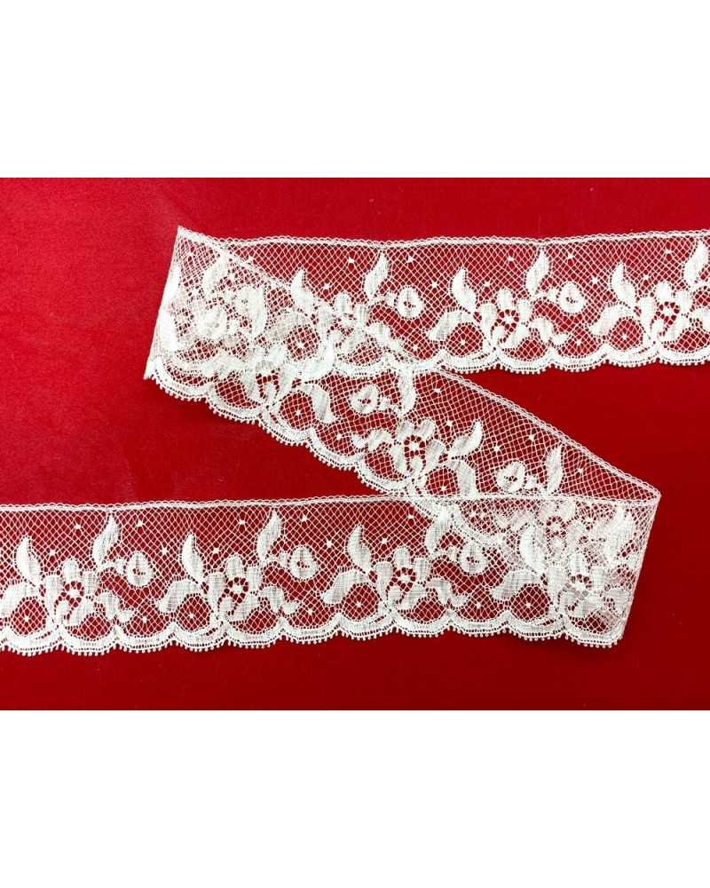 Passmaneria Merletto Pizzo Valencienne Bianco Broderie Fleur Haute Cm 4