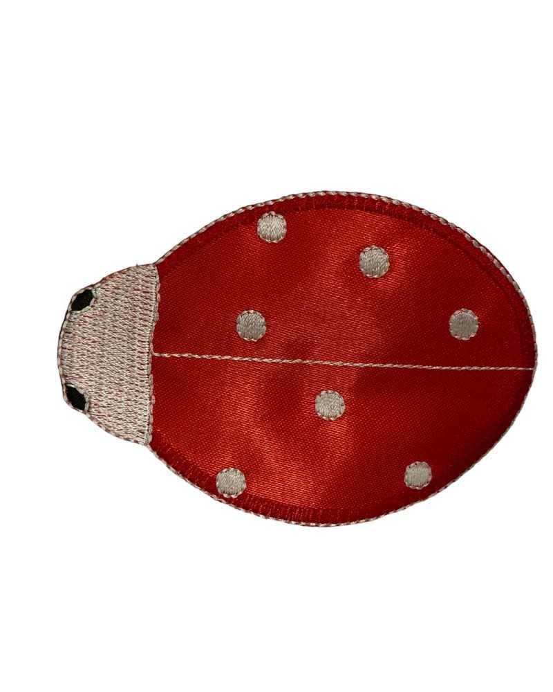 Application Patch thermoadhésif Coccinella Tissu Satin rouge broderie poli Pois blanc 95x65 Mm
