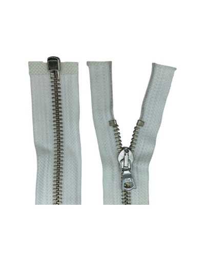 Fermeture à glissière divisible blanc laiteux 64 cm - Chaîne en métal argenté taille 6 - Fermeture à glissière pour vestes, sacs, couture - Tomaselli Merceria