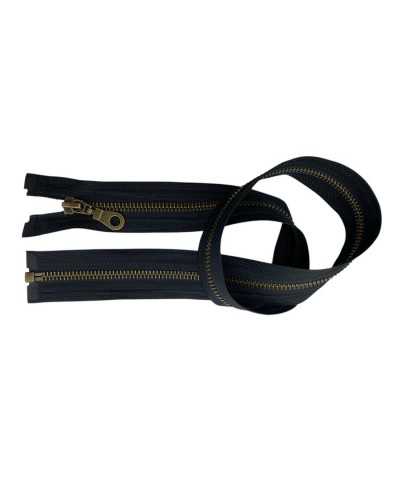 Fermeture à glissière divisible de 75 cm avec 5 chaînes métalliques en finition vieil or bruni et 1 curseur. Sangle en polycoton durable. Idéal pour les vestes, les sacs, les sacs à dos et les vêtements sur mesure. Prix par pièce.