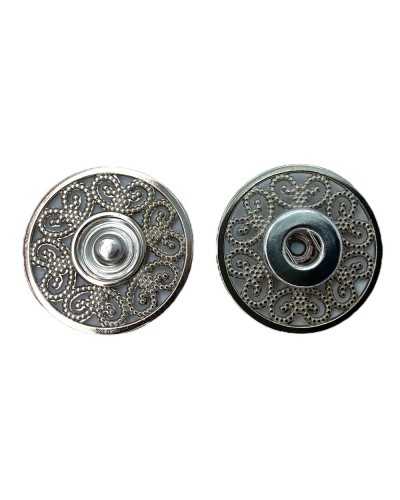 Button Round Automatic Pressure Steel Inlaid Flower Pattern Large 2.8 cm
