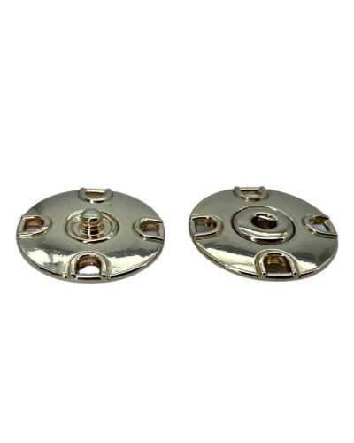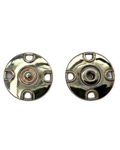 Automatic coat pressure button, polished metal, size 40 (25 mm diameter, 2.5 x 2.5 cm). Consisting of male and female, sold as a single piece. Made of steel, available in silver, gunmetal and gold.
