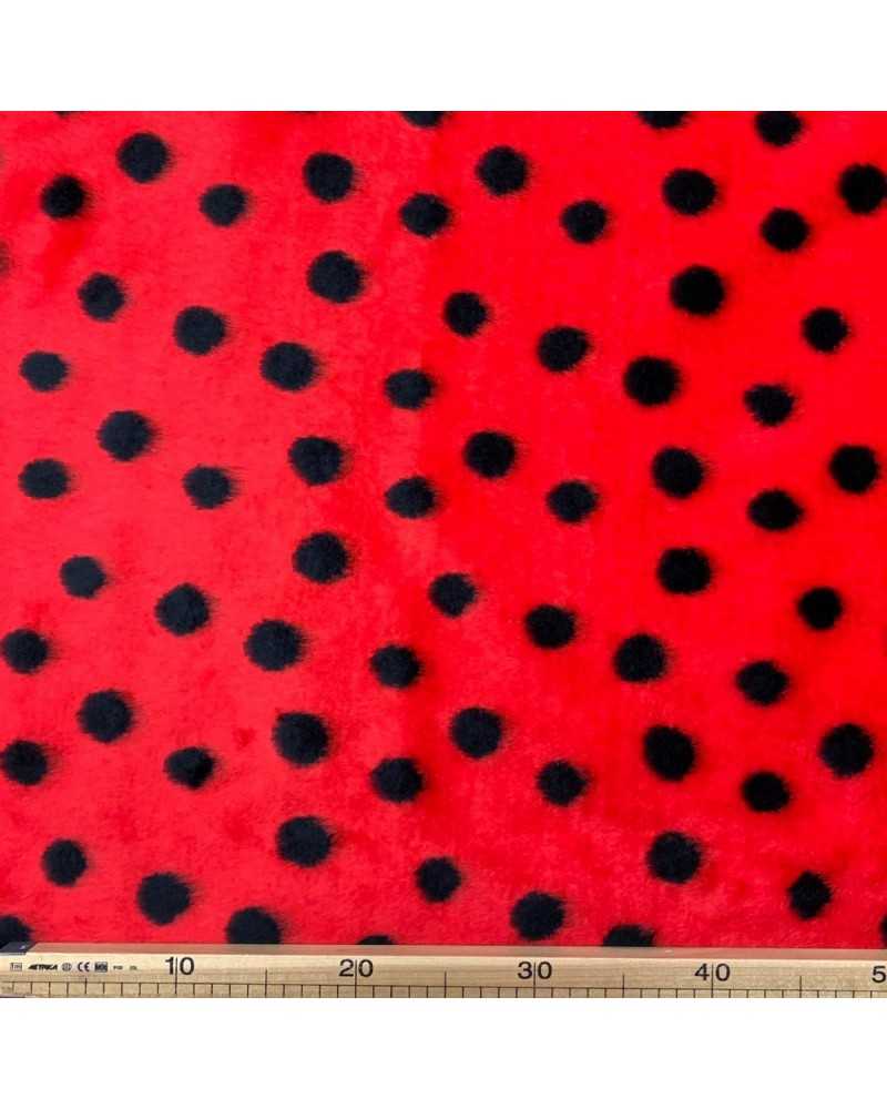 Carnival Fur Fabric Ladybird Polka Dot Red and Black 150 cm High