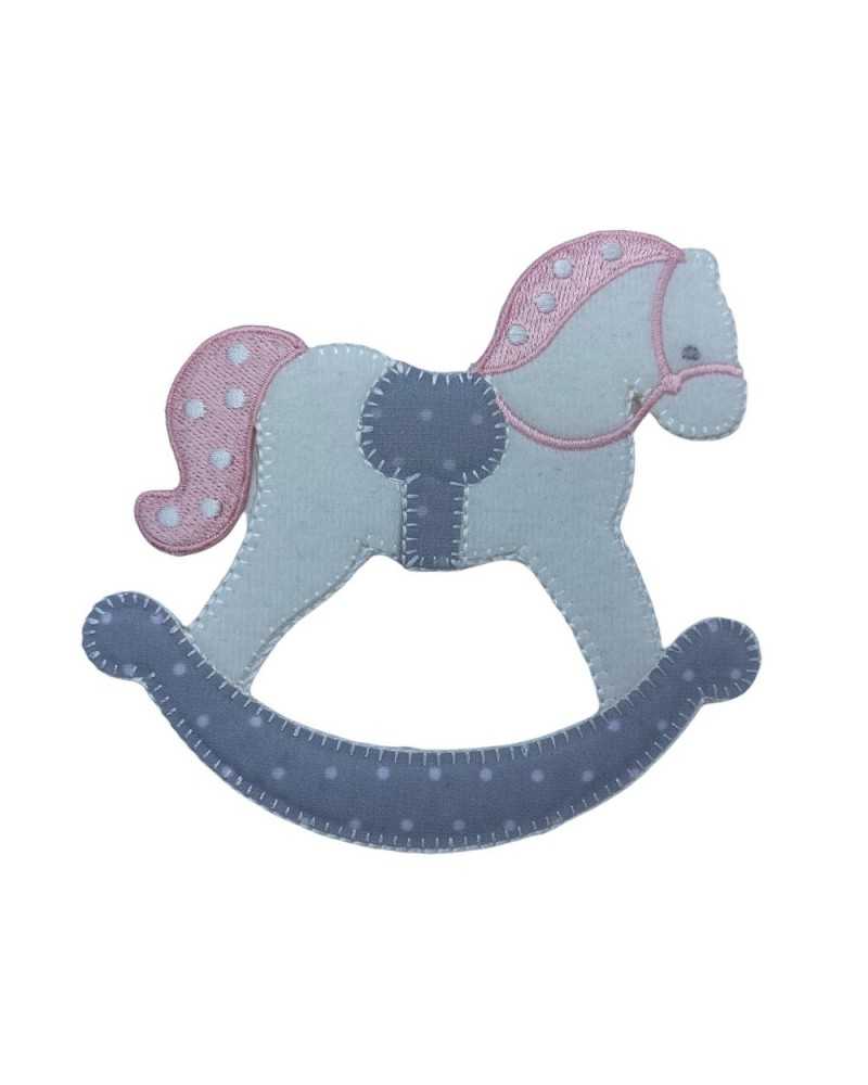 FS Heat-Adhesive Application Rocking HorsePink Grey Velvet White 70x65 Mm
