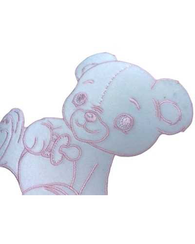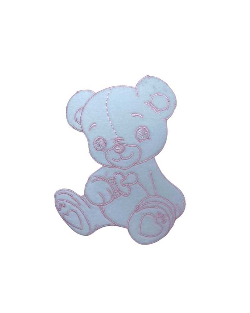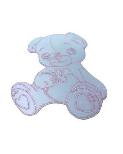 Thermal Application Patch Embroidery Pink Velvet White Bear Seat 12x10 Cm