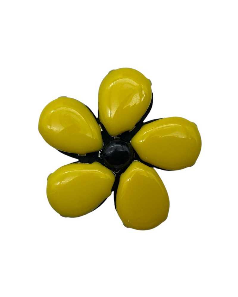 Sew-on appliqué in the shape of a 4 cm flower with shiny petals and a central coloured stone. Ideal for clothes, bags, children's fashion and tailoring decorations. Available in various colours from TOMASELLI Merceria.