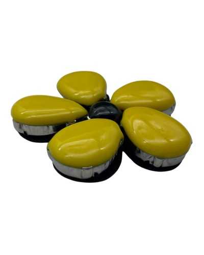 Available colours Yellow with black centre, Pink with red centre, Beige with ruby centre