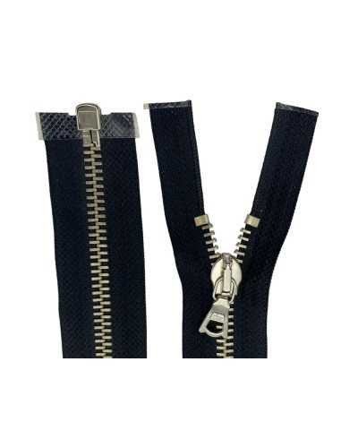 metal zip silver 64 cm, chain 6 black divisible zip, zip with 1 slider , zip for jackets and bags, technical tailoring accessories, elegant strong zip, professional tailoring zip, metal zip technical clothing