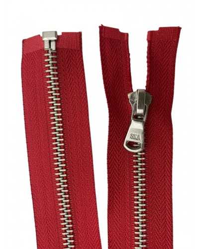 Divisible zip with 5 mm silver metal chain, equipped with 1 metal slider and polycotton webbing. Designed for strength and practicality, it is perfect for technical garments, jackets, sweatshirts, coats and suits. The elegant and functional design is suitable for all types of tailoring.