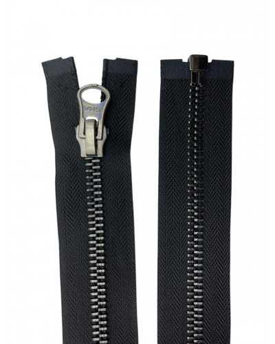 80 cm divisible zip with 8 mm metal chain in gunmetal finish. Black polycotton webbing, durable and sewable. Ideal for jackets, bags, backpacks and technical clothing. Price per piece.