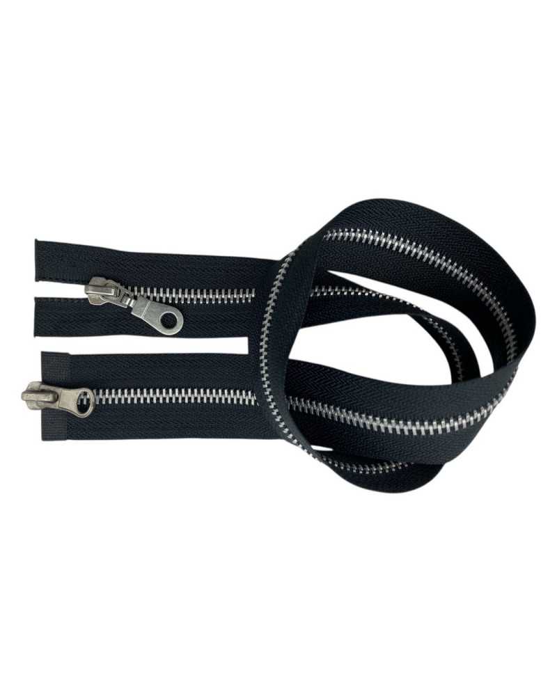 double-slider metal zip, 60 cm chain zip no. 5, silver divisible zip, zip for jackets and bags, technical tailoring accessories, resistant urban zip, professional clothing zip