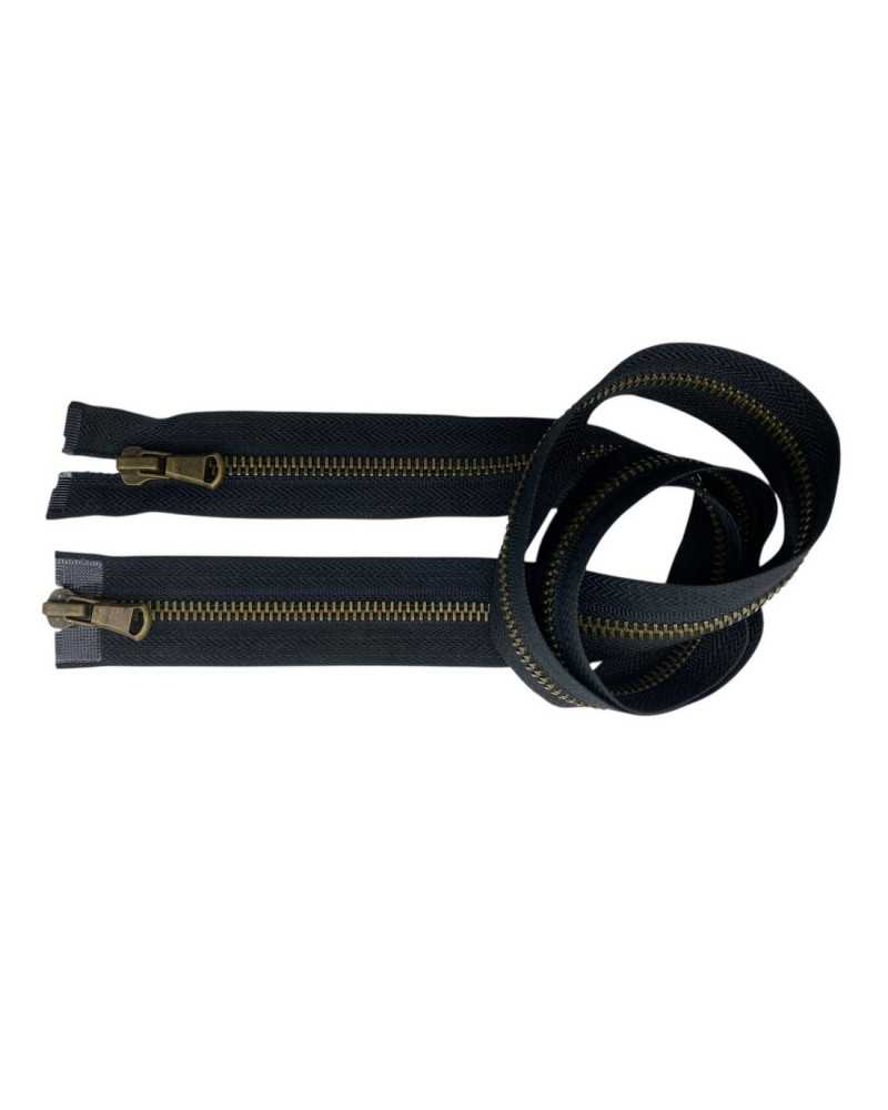 metal zip 85 cm, double-slider divisible zip, chain zip 5 antique gold, tailor-made zip, technical fashion accessories , zip for jackets and coats, elegant heavy-duty zip, double-opening metal zip