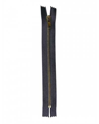 The 40 cm Fixed Metal Zipper with lurex herringbone webbing and gold chain No. 5 is a high-quality sartorial component designed to stylishly and elegantly finish garments and accessories. The herringbone design with lurex thread gives a shiny and sophisticated effect, while the gold metal chain guarantees resistance and fluidity in the opening.