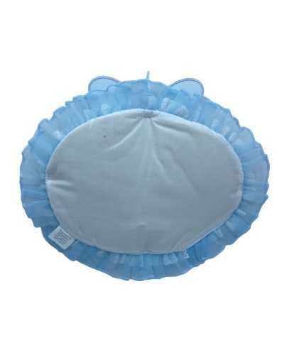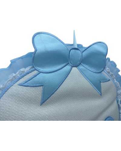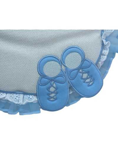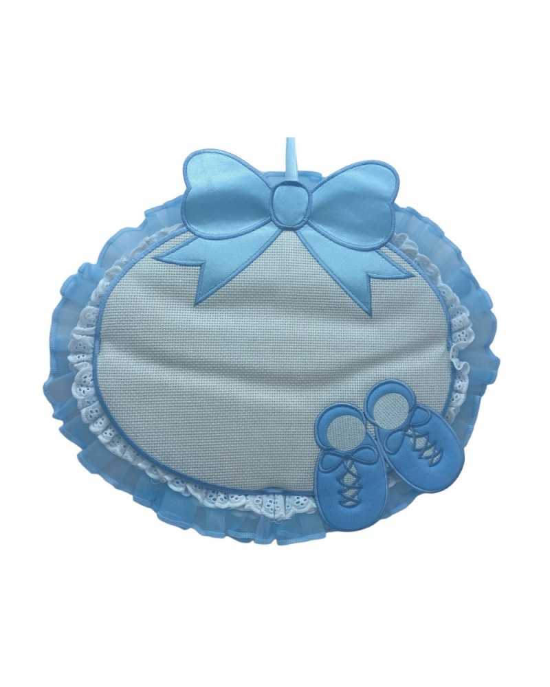 Fiocco Raso Nascita Celeste Tela Aida Bianco Rouges Pizzo Sangallo Organza Celeste Ricamo Scarpette Alto 35x30 Cm