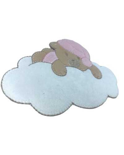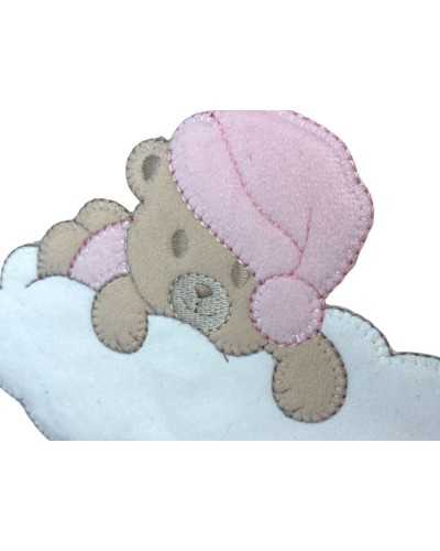Applicazione Termoadesiva Baby Orsetto Beige Nuvola Bianca Velluto 14x10 Cm