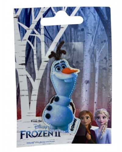 Applicazione termoadesiva raffigurante un simpatico pupazzo di neve ispirato ai personaggi dei cartoni animati. Un'idea originale per personalizzare capi e accessori con un tocco allegro e invernale.