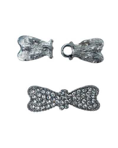 🎀 Gancio Alamaro Gioiello a Fiocco – Metallo con Strass Argento – 3,3 x 1,2 cm