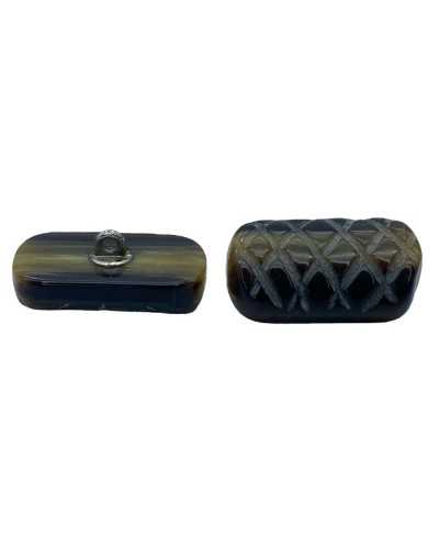Bottone Bombato Rettangolare Marrone Marmorizzato Asola Metallo 1,8x3 Cm
