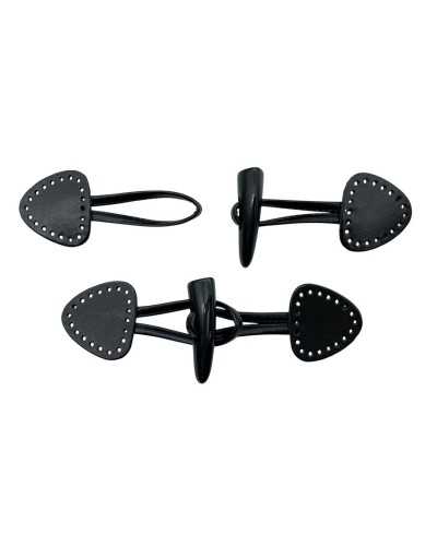 Alamaro in Pelle con Triangolo 4 cm e Bottone in Corno 5 cm Chiusura per Cappotti e Maglieria