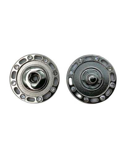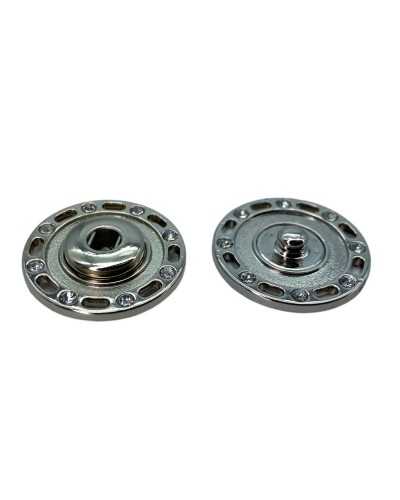 Bottone Automatico Pressione Metallo Lucido Strass Cucire misura 40 25x25 mm