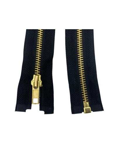 Cerniera Zip Metallo Ottone Oro 80 cm Apribile Sganciabile per Giubbotti e Giacche