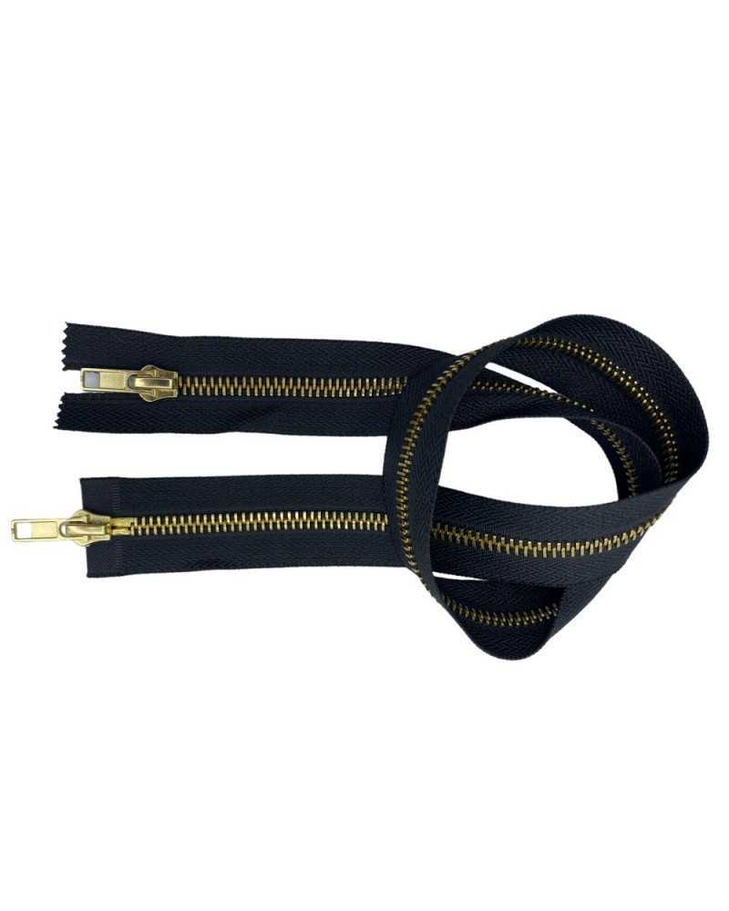 Cerniera Zip Lampo Chiusura Metallo Ottone Catena Oro Doppio Cursore Sganciabile Cm 70