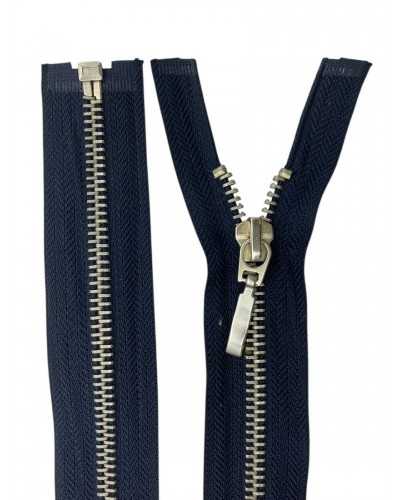 Cerniera Metallo Divisibile 60 Cm Catena 5 Argento 1 Cursore Fettuccia Policotone