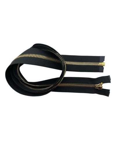 cerniera metallo 85 cm, cerniera doppio cursore, cerniera oro, zip in metallo robusta, cerniera con innesto rapido, zip per giacche cappotti borse, cerniera tranciata, cerniera sartoriale professionale