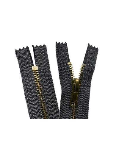 Cerniera in metallo fissa da 40 cm con fettuccia spigata lurex e catena oro N°5. Dotata di 1 cursore. Ideale per abbigliamento, borse e accessori moda. Elegante, resistente e facile da applicare.