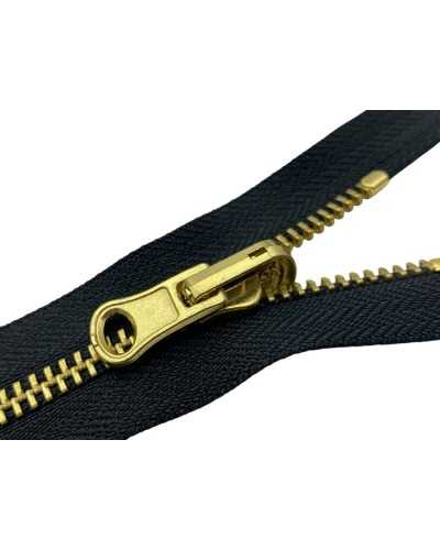 Cerniera in metallo da 70 cm con catena N°5, doppio cursore reversibile e fettuccia in policotone nero. Ideale per giacche, borse, zaini e abbigliamento tecnico. Prezzo per pezzo.