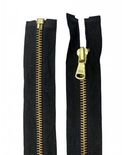 cerniera metallo 100 cm, zip divisibile catena 5, zip oro 1 cursore, cerniera lampo policotone, accessori sartoria moda, zip per giacche lunghe e cappotti, cerniera resistente elegante, zip sartoriale professionale