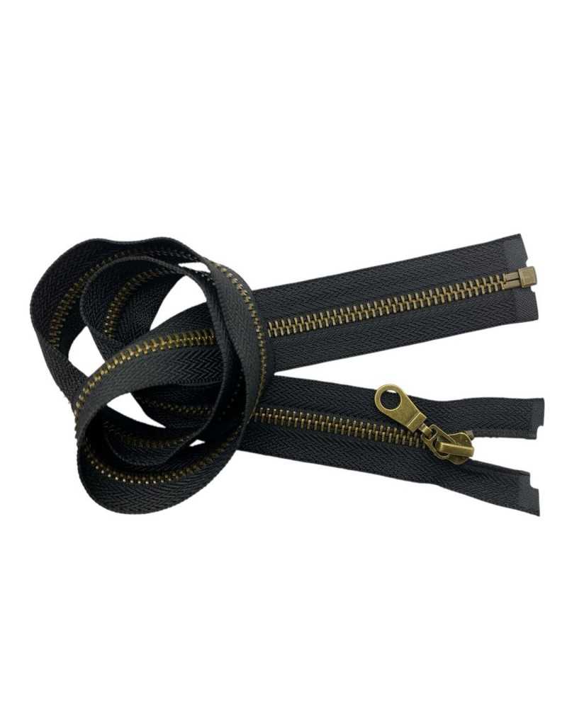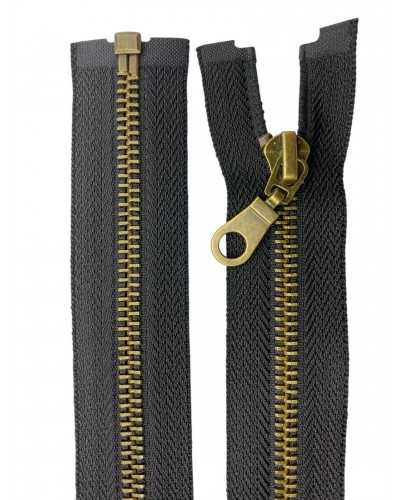 Cerniera zip in metallo ottone oro antico scuro, apribile e sganciabile, lunga 70 cm, con catena 5 e 1 cursore. Ideale per giacche, cappotti, giubbotti, moda e riparazioni sartoriali. Prezzo per pezzo.