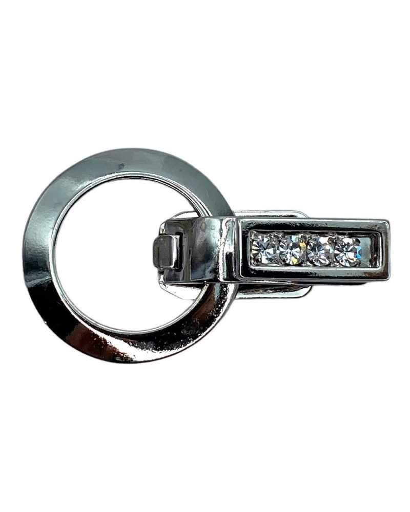 Elegante alamaro gioiello in metallo lucido argento con strass cubici. Misura 2,5x4 cm, ideale come chiusura per capi d'abbigliamento e accessori. Zama e vetro di alta qualità. Prezzo per pezzo.