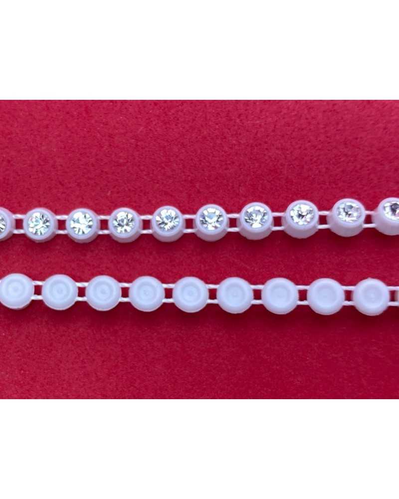Passamaneria Gioiello con Strass Trasparente Plastica Bianco 5 mm