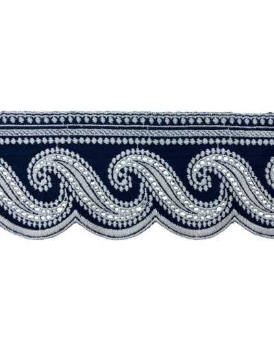 Passamaneria Pizzo Sangallo Cotone Bianco Bordo Blu 8 Cm
