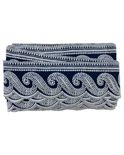 50 cm Passamaneria Pizzo Sangallo Ricamo Bianco con Bordo Blu Cotone Altezza 8 cm