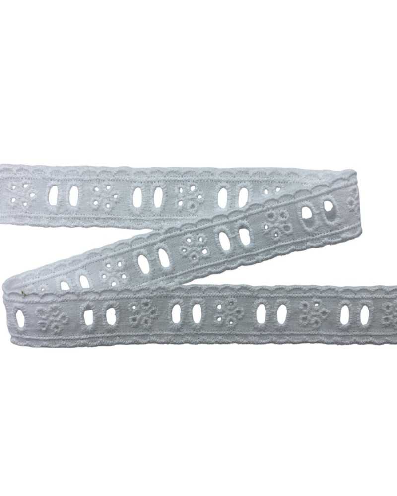 Passamaneria Pizzo Sangallo Passanastro Tramezzo con Ricamo a Fiore Bianco - Altezza 2 cm
