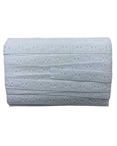La Passamaneria Pizzo Sangallo Passanastro Tramezzo Ricamo Fiore Bianco, alta 2 cm, è un elegante nastro decorativo realizzato in puro cotone 100%. Ideale per aggiungere un tocco raffinato e artigianale ai tuoi progetti creativi e tessili.