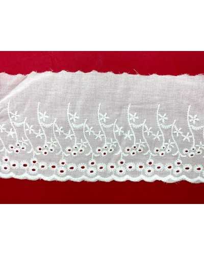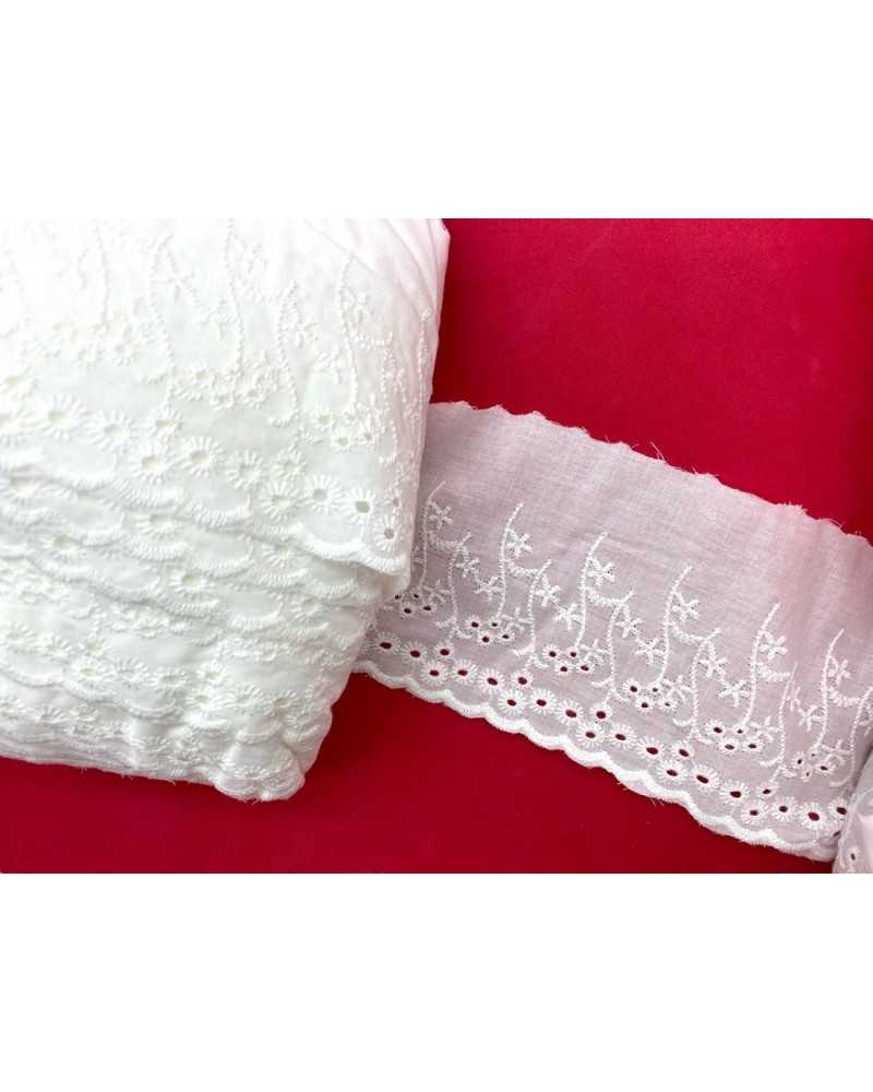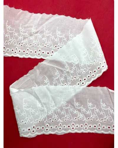 Passamaneria Pizzo sangallo Cotone Bianco Smerlato Ricamo Stelo Fiore Alto 10 cm